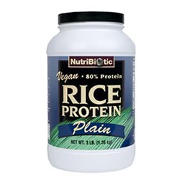 NutriBiotic Rice Protein Vegan, Plain 80% Protein Content Hypo-Allergenic GMO & Gluten Free NutriBiotic Plain Rice Protein is a great tasting vegetable protein made from non-genetically modified whole grain sprouted brown rice. Free of the common food allergens normally associated with soy, milk, egg, wheat, and corn. This highly soluble powdered formula mixes easily into water, juice, or meals for an extra protein boost. Chemical processing is avoided by using a purified water and natural enzyme procedure. Low Temperature Enzyme Process The whole brown rice is first ground into a fine flour. Pure filtered water is then added, forming a thick slurry (called liquefaction) Natural enzymes are added in at different stages to break down and separate the carbohydrate and fiber from the protein portion of the whole grain. All processing temperatures are kept below 90° F. The low temperature and chemical free processing prevents denaturing of the amino acids. The final stage involves filtering, drying and low temperature milling.